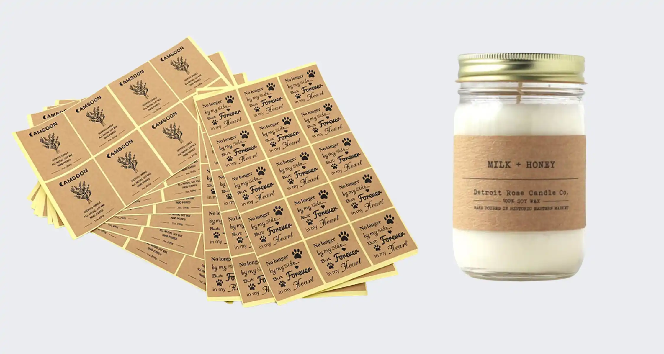 Kraft paper stickers have an organic and home made feel that creates a sense of authenticity. Naturally light brown in color, it has the characteristic of recycled paper, making it feel as if the material has been created by hand and from the heart.