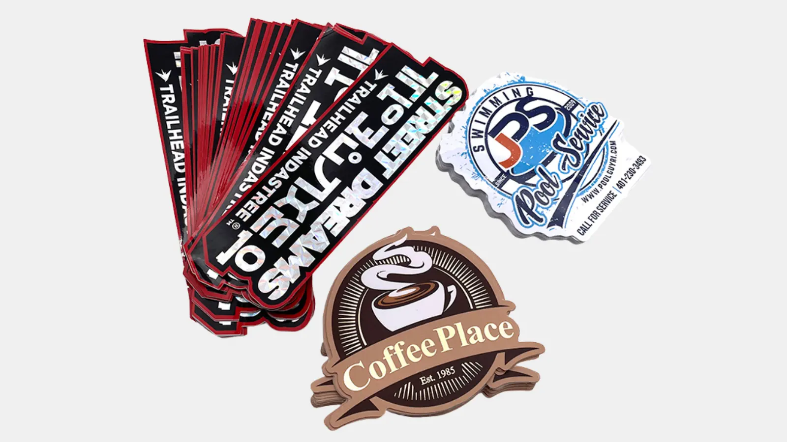 Elevate your designs with custom-shaped vinyl stickers that have durable, weatherproof material and vivid inks with matte or gloss finishes.